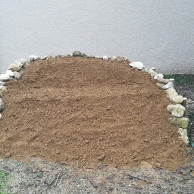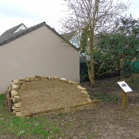 Cette levée de terre adossée à un mur semi-circulaire de pierres fournit des conditions idéales aux abeilles solitaires, aux pompiles et aux sphex. Les femelles creusent leurs nids dans la terre ou le bois (des renforts non traités et percés de petits trous ont été ajoutés à cette fin).